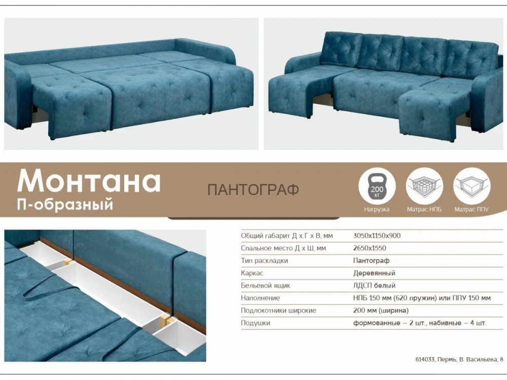 Диван Монтана П-образный в Кусе - kusa.mebel74.com | фото 4